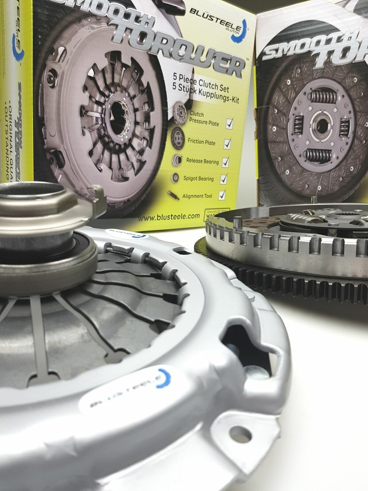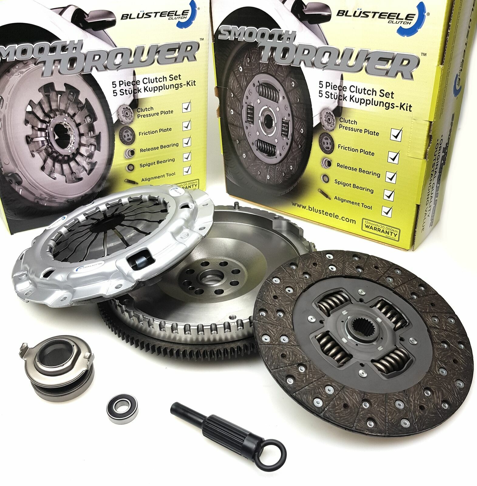 Blusteele Smooth Torquer Clutch kits are designed and manufactured to meet the original clutch system installed from factory. This is a conversion kit. Converting from factory style dual mass flywheel to a solid flywheel Suits the following: Mazda BT50 2006 - 2011, 2.5 Litre Turbo Diesel WLT Mazda BT50 2006 - 2011, 3.0 Litre Turbo Diesel WEAT Ford Ranger PJ-PK 2006 - 2011, 2.5 Litre Turbo Diesel WLT Ford Ranger PJ-PK 2006 - 2011, 3.0 Litre Turbo Diesel WEAT Specs: Clutch Dimensions: 238 x 23T x 26.2 You will receive a clutch kit including: NEW Single Mass Flywheel NEW Clutch Pressure Plate Cover assembly NEW Organic Clutch plate NEW Thrust bearing and Carrier NEW Alignment tool NEW Spigot Bearing . Blusteele is a brand you can trust, each component has been thoroughly tested and developed to provide a Quality Assured replacement part that will meet or exceed the requirements of o. spec clutch kit. The “Smooth Torquer” is Blusteele’s o.e standard replacement clutch system. If your requirements are for a clutch kit which is stronger than the original equipment clutch you may need to look at Blusteele’s “Heavy Duty” range of clutch kits. We have them in our eBay store, if you can’t find what you require, please contact us for assistance on the below phone number or via eBay messages.