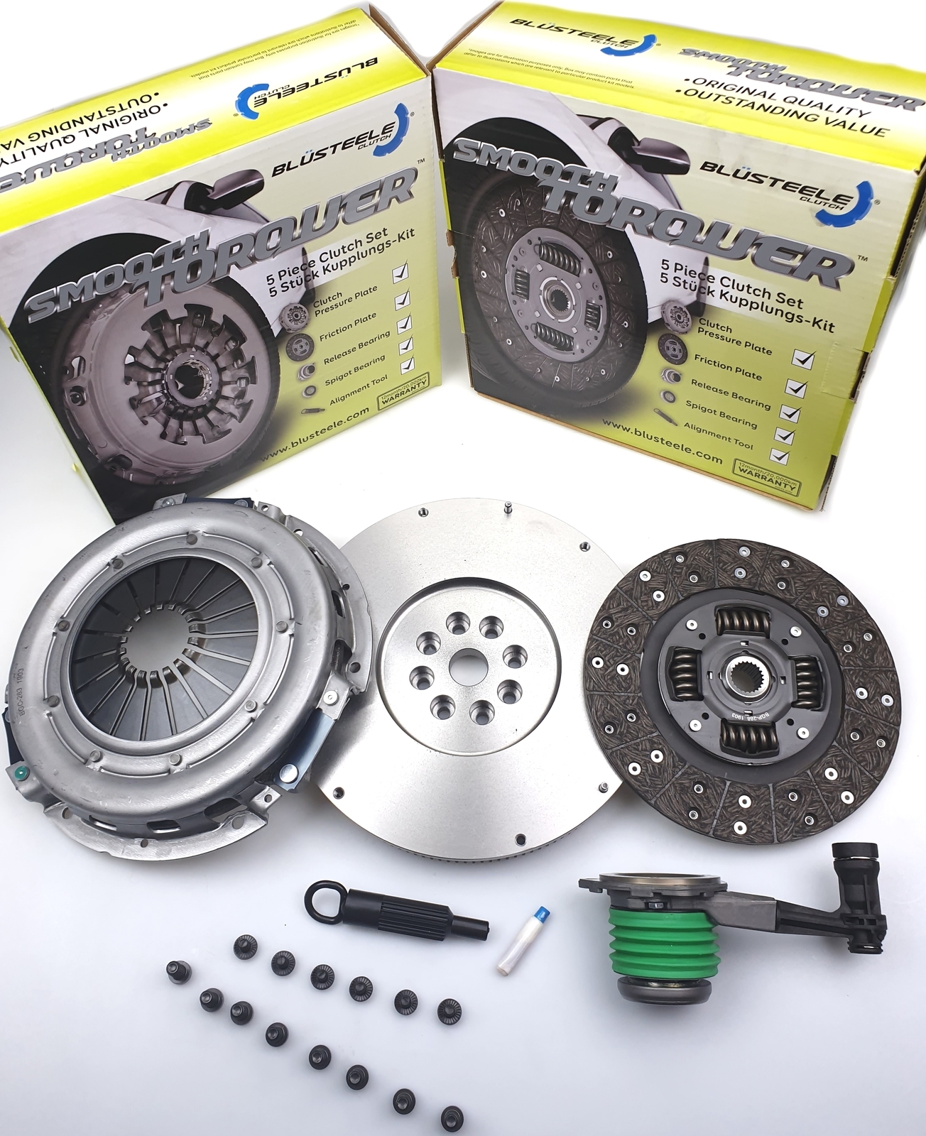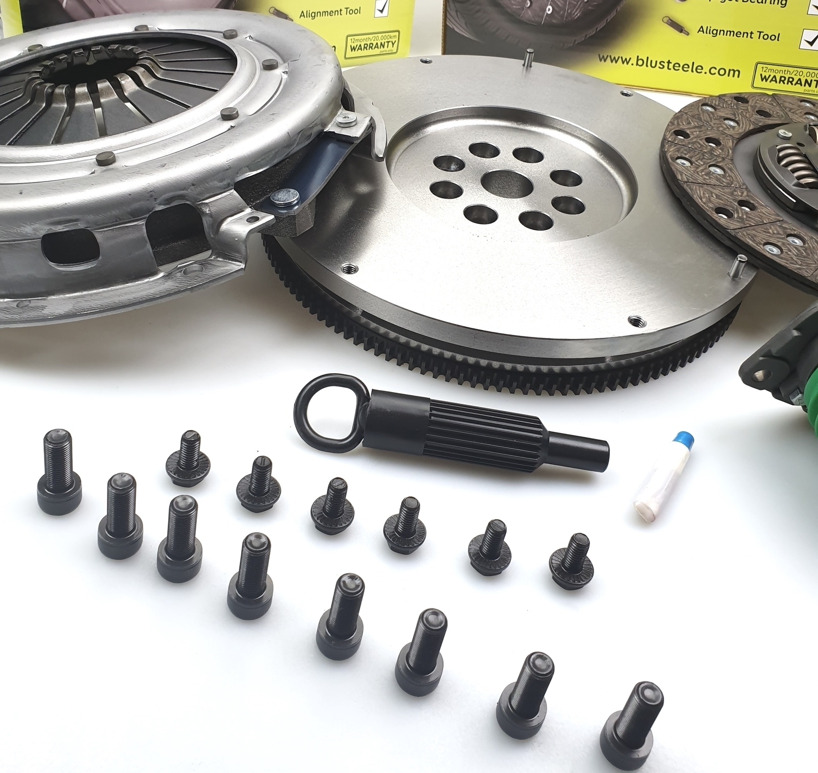 Blusteele Smooth Torquer Clutch kits are designed and manufactured to meet the original clutch system installed from factory. Please Send through you VIN or REGO number for an accurate check on you Vehicles clutch kit, there may be several types that can fit your vehicle. *This is a Solid conversion kit, converting from the Factory style Dual Mass Flywheel to a Single Mass Flywheel Suits the following: HOLDEN COMMODORE VZ-VE-VF SV6 3.6 LITRE PETROL V6 YEARS OF BUILD FROM 2004 - 2017 Specs: CLUTCH PLATE DIMENSIONS 267 X 23T X 26.7 You will receive a clutch kit including: Pressure Plate Organic Friction Plate Concentric Slave Cylinder New Solid Mass Conversion Flywheel Alignment Tool. Blusteele is a brand you can trust, each component has been thoroughly tested and developed to provide a Quality Assured replacement part that will meet or exceed the requirements of o. spec clutch kit. The “Smooth Torquer” is Blusteele’s O.E standard replacement clutch system. If your requirements are for a clutch kit which is stronger than the original equipment clutch you may need to look at Blusteele’s “Heavy Duty” range of clutch kits. We have them in our eBay store, if you can’t find what you require, please contact us for assistance on the below phone number or via eBay messages. *All pictures are for illustration purpose only, they are not the actual item.