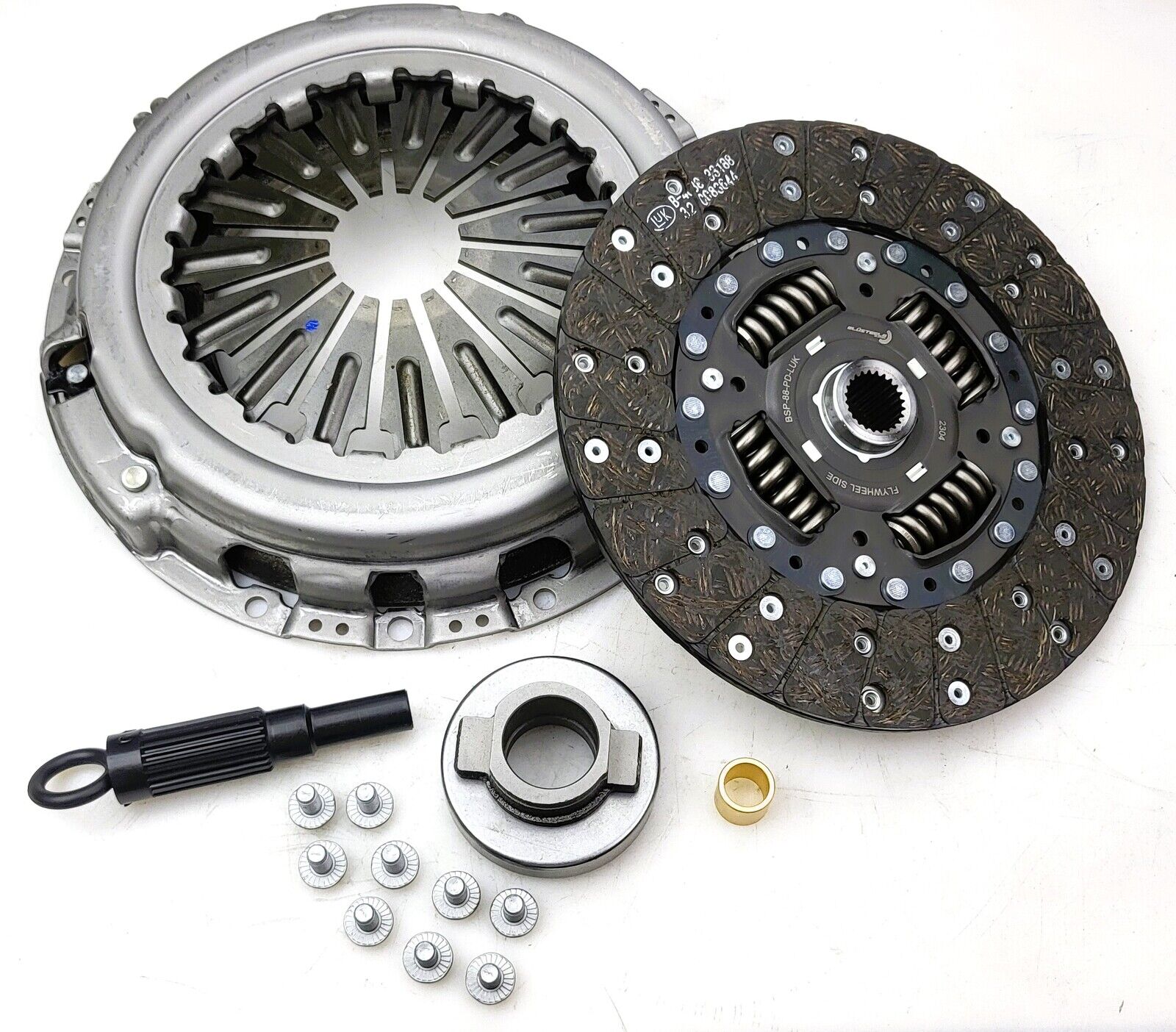 Blusteele Smooth Torquer Clutch kits are designed and manufactured to meet the original clutch system installed from factory. PLEASE SEND THROUGH YOU VIN OR REGO NUMBER FOR AN ACCURATE CHECK ON YOUR VEHICLES CLUTCH KIT, THERE MAY BE SEVERAL TYPES THAT CAN FIT YOUR VEHICLE SUITS THE FOLLOWING: NISSAN NAVARA & 551 pathfinder D40 2.5 LITRE TURBO DIESEL YD25DDTI YEARS OF BUILD FROM 2005 - 2015 *Note. There are 2 different sized clutch kits for the Nissan Navara D40, YD25DDTI, 250mm and 275mm. These clutch kits are NOT interchangeable. To ensure you order the correct size clutch kit for your vehicle, send your VIN or Rego, build date (mm/yyyy) and Build location if known. (Thailand/Spain) **Note. This clutch kit will only suit Factory style Dual Mass Flywheel or Blusteele’s Solid Conversion Single Mass Flywheel. PERFORMANCE FIGURES: CLUTCH PLATE DIMENSIONS 250 X 24T X 25.5 You will receive a clutch kit including: NEW Clutch Pressure Plate Cover assembly NEW Organic Clutch plate NEW Thrust bearing and Carrier NEW Alignment tool NEW Spigot bush . Blusteele is a brand you can trust; each component has been thoroughly tested and developed to provide a Quality Assured replacement part that will meet or exceed the requirements of o. spec clutch kit. The “Smooth Torquer” is Blusteele’s O.E standard replacement clutch system. If your requirements are for a clutch kit which is stronger than the original equipment clutch; you may need to look at Blusteele’s “Heavy Duty” range of clutch kits. We have them in our eBay store, if you can’t find what you require, please contact us via eBay messages for assistance. *All pictures are for illustration purpose only, they are not the actual item.