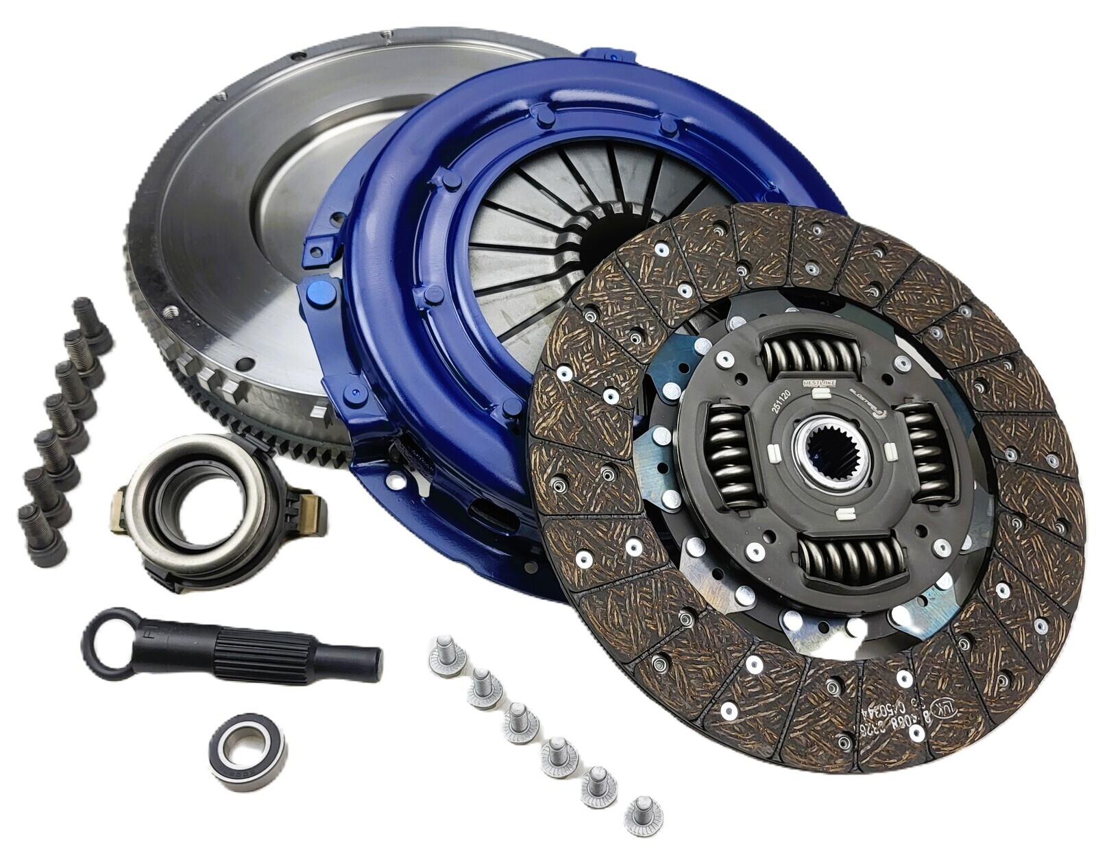 Clutch kit includes: Heavy Duty Pressure Plate Heavy Duty Organic Friction Plate Thrust Bearing Solid Conversion Flywheel Spigot bearing Alignment Tool