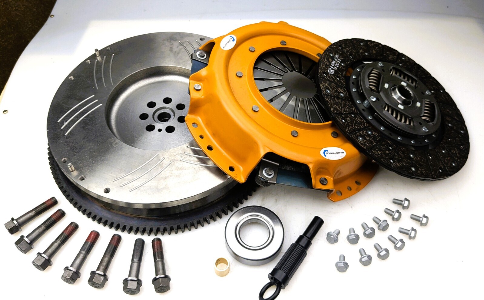 BLUSTEELE - 4X4 SURVIVOR SERIES Please Send through your VIN or REGO number for an accurate check on your Vehicles clutch kit, there may be several types that can fit your vehicle. This is a conversion kit, converting from the factory style Dual Mass Flywheel to a Solid Flywheel Suits the following: Nissan Patrol GU II 3.0 Litre Diesel TDI ZD30DDTi Years of build from 04/2000 - 09/2004 Performance Figures: Torque Capacity - 716NM Peak Torque Clutch Plate Dimensions 275 x 24T x 25.5 YOU WILL RECEIVE A CLUTCH KIT INCLUDING: BLUSTEELE SURVIVOR SERIES SGI COVER ASSEMBLY BLUSTEELE SS PREMIUM ORGANIC CLUTCH PLATE BILLET CHROMOLLY FLYWHEEL PREMIUM THRUST BEARING ALIGNMENT TOOL SPIGOT BUSH DESIGNED SPECIFICALLY FOR THE DEMANDING NEEDS OF AUSTRALIAN 4X4 ENTHUSIASTS. BLUSTEELE'S FLAGSHIP PRODUCT, THE SURVIVOR SERIES IS A PREMIUM QUALITY 4X4 HEAVY DUTY CLUTCH KIT. MANUFACTURED USING ONLY THE BEST QUALITY MATERIALS, THE SURVIVOR SERIES IS YOUR BEST CHOICE FOR OFF ROAD DRIVING AS WELL AS CONSTANT TOWING. NCI IRON PRESSURE PLATE - NODULAR CAST IRON WHICH IS 300% STRONGER, UNLIKE GREY IRON WHICH MOST PRESSURE PLATES ARE MADE. PREMIUM ORGANIC CLUTCH PLATE, PERFECT FOR FEATHERING WHILST OFF ROAD SUPERIOR GRIP AND BITE THROUGH IMPROVED PIVOT POINTS ON THE CLUTCH DIAPHRAGM. *Please note - all pictures and photos are for illustration purpose only. The item you receive may look different and or not have what is pictured.